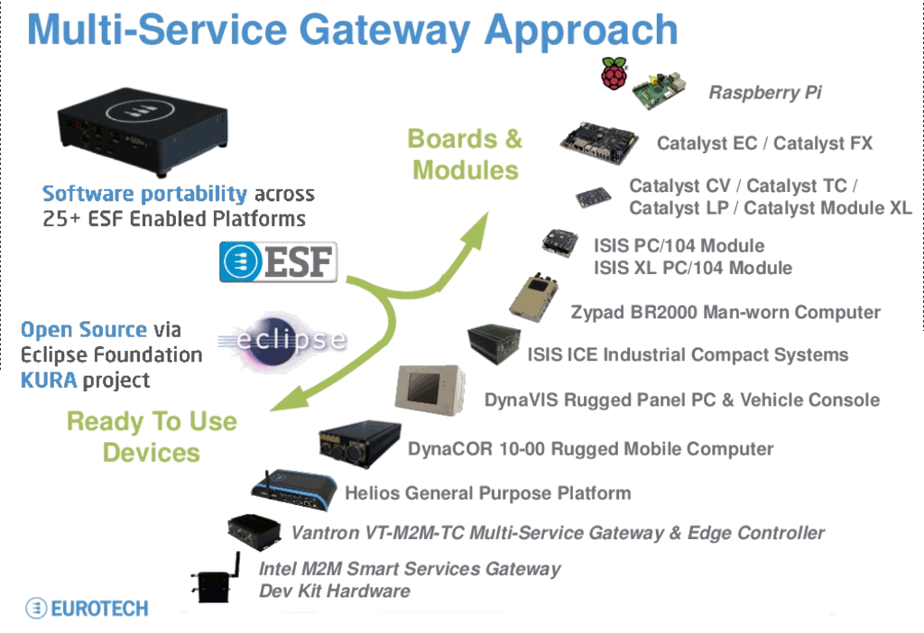 With application areas including industrial PCs, HMIs, access & security, data concentrator/logger/gateways and monitoring & control, Eurotech is uniquely placed in being able to offer hardware, operating system, communications and middleware components all developed and supported directly in-house.