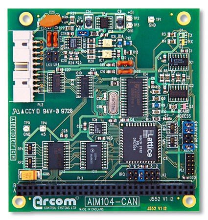 The AIM104-CAN is an 8-bit PC/104 module providing a single channel, optically isolated, Controller Area Network (CAN) interface. In addition, the board is fitted with an EEPROM for configuration information and an output port for driving three bi-colour LED’s.